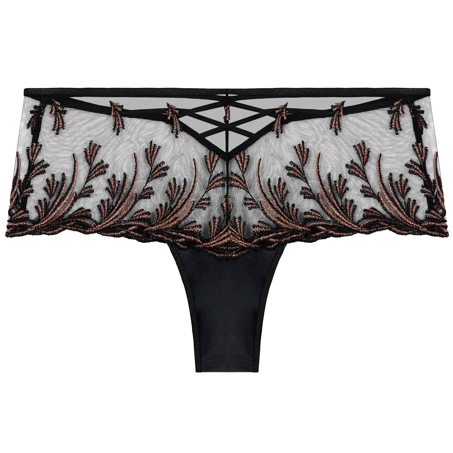 EMBROIDERY:65% POLYESTER 28% POLYAMIDE 7% ELASTANE FRONT EMBROIDERY:73% POLYESTER 21% POLYAMIDE 6% ELASTANE SEAT:100% COTTON SATIN:86% POLYAMIDE 14% ELASTANE